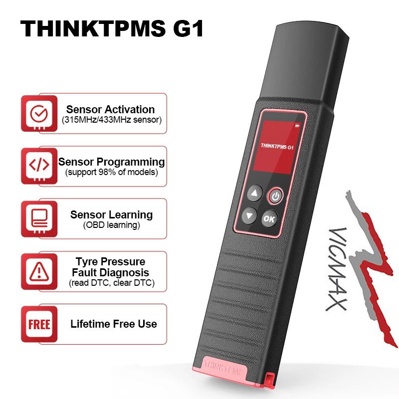 THINKTPMS G1 es la primera herramienta que diagnostica la presión de neumáticos de función completa de la industria del motor conectada a través de Bluetooth y utilizada por la aplicación para propietarios de automóviles y mecánicos. G1 integra funciones de activación, lectura, reaprendizaje y programación de la presión de los neumáticos TPMS.
